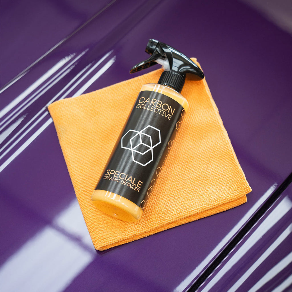 Speciale is an effective maintenance product for ceramic coated surfaces, or a standalone spray sealant for uncoated surfaces. Unlike other products, it doesn’t require a base coat or prep. Simply spray & wipe to apply a slick, fast, gloss boosting, hydrophobic barrier.