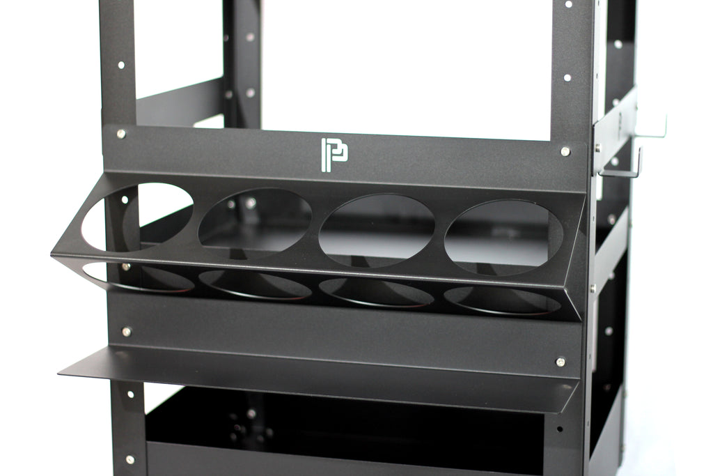 It can be mounted on a Poka Premium detailing trolley with modulated legs (multi hole legs) as an additional hanger.
