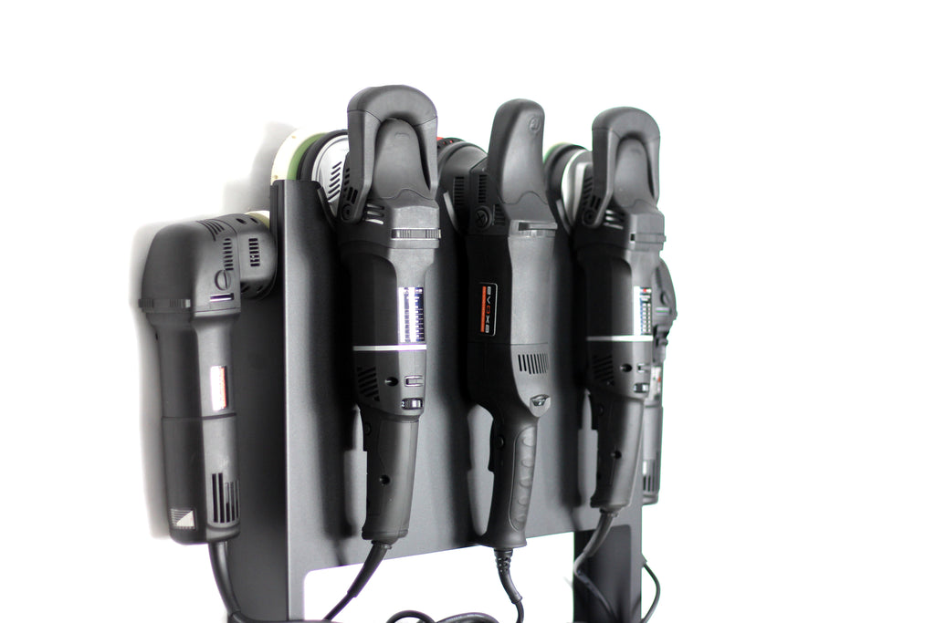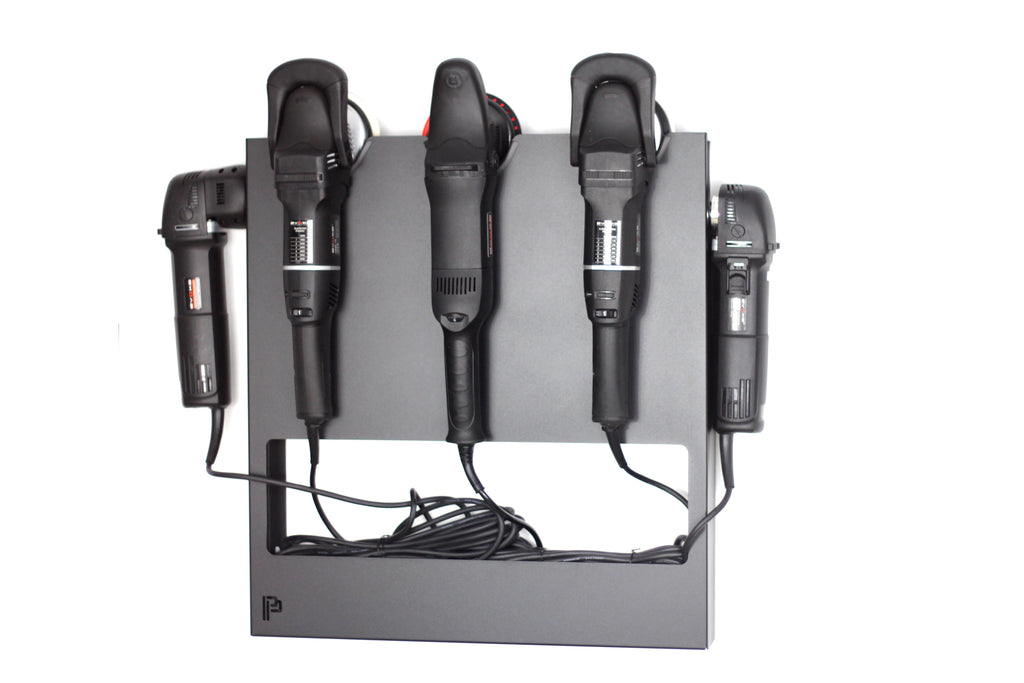 The Poka Premium Rectangular Three Machine Polisher Hanger is a high-quality hanger for 3 to 5 polishing machines with convenient cable storage.