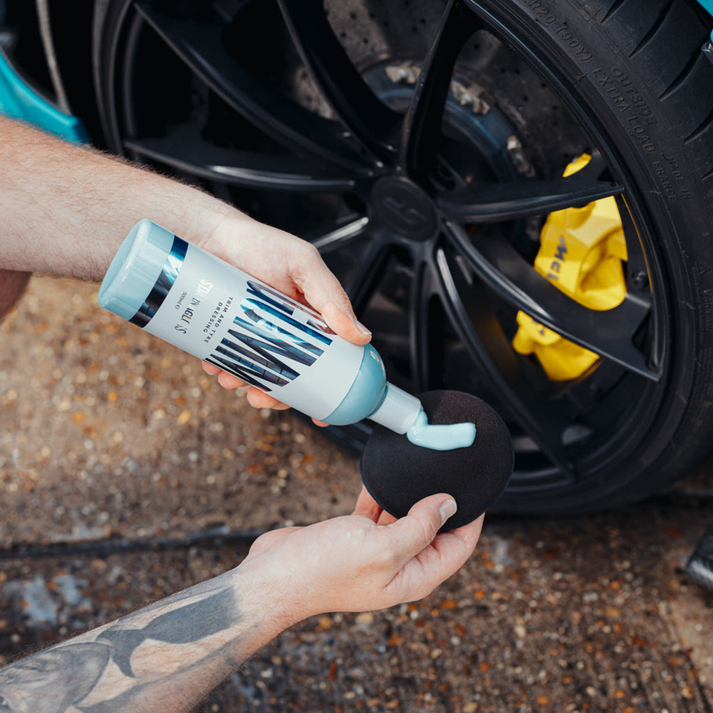 Gummi is the perfect consistency for applying to tyres and trim – a light blue cream that glides onto rubber and plastic surfaces quickly and easily. You’ll never use too much or feel it dripping down the paintwork you’ve just polished.