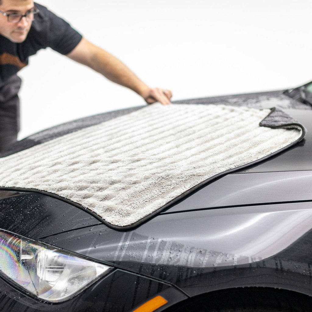 The Gauntlet drying towels are one of the most unique high-quality detailing towels ever produced. Super thirsty premium Korean 70/30 blend fibers in a unique, patented twist-loop hybrid design create levels of absorbency previously only imagined. Alternating stripes of twist loop and soft plush sets The Gauntlet apart from others and then add TRC's exclusive world-class ButterSoft™ 70/30 suede border and The Gauntlet is in a league of its own.