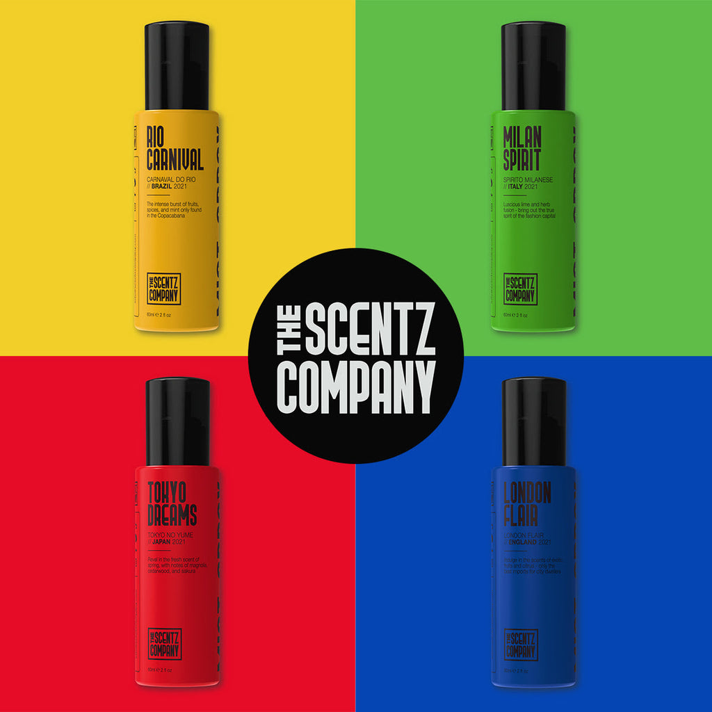 Sprayable air fresheners in premium, glass bottles. Each scent reflects the vivid sensory influence of its country of origin.